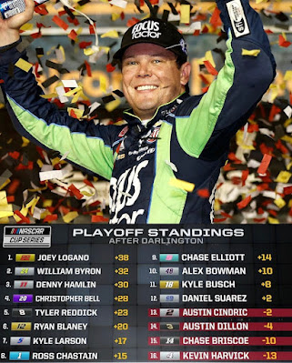 Let’s go through the playoff field. Denny Hamlin finished 2nd, after trying to chase down Erik Jones. Tyler Reddick applied pressure to Denny Hamlin in the closing laps, as he came home 3rd. Joey Logano who started on pole, and dominated the first stage of tonight’s Southern 500 comes home 4th. Christopher Bell held a pretty wheel all night long and finished 5th. William Byron was the best out of Hendrick Motorsports tonight, as he finished 8th. Alex Bowman finished 10th, after a solid run for Hendrick Motorsports. Kyle Larson in a rebounding night finished 12th for Hendrick Motorsports. Ryan Blaney finished for Team Penske in 13th after the fear of a loose wheel popped up towards the end of the race. Austin Cindric, the rookie, finished 16th, for Team Penske followed by Austin Dillon in 17th for Richard Childress Racing. Daniel Suarez, who started a lap down, finished 18th for Trackhouse Racing. Ross Chastain for Trackhouse Racing, saw trouble tonight but finished 20th. Chase Briscoe, for Stewart-Haas Racing, struggled all night and finished 27th. Kyle Busch for Joe Gibbs Racing finished 30th, after a quick turn of events, with a blown engine that ended his night. Martin Truex Jr. for Joe Gibbs Racing also saw engine trouble, as his #19 machine overheated. Truex Jr. finished 31st. Kevin Harvick’s #4 machine burst into flames, as he finished 33rd for Stewart-Haas Racing. Lastly, Chase Elliott for Hendrick Motorsports finished 36th after a frustrating night.